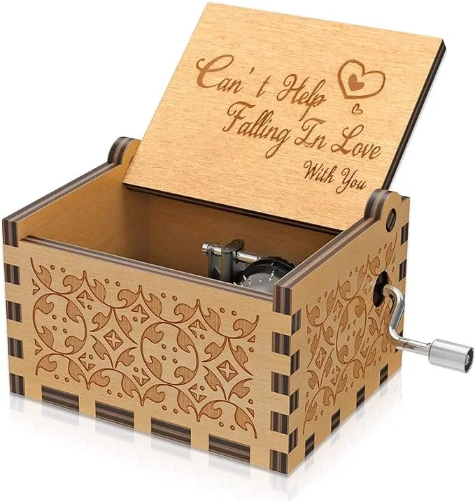 This beautifully crafted antique-style wooden music box plays the timeless melody "Can't Help Falling in Love" with a simple hand-crank mechanism. Its intricate engraving and charming design make it the perfect heartfelt gift for Valentine’s Day. Whether for your wife, husband, girlfriend, boyfriend, or even kids, this mini music box is a meaningful keepsake that will leave a lasting impression.